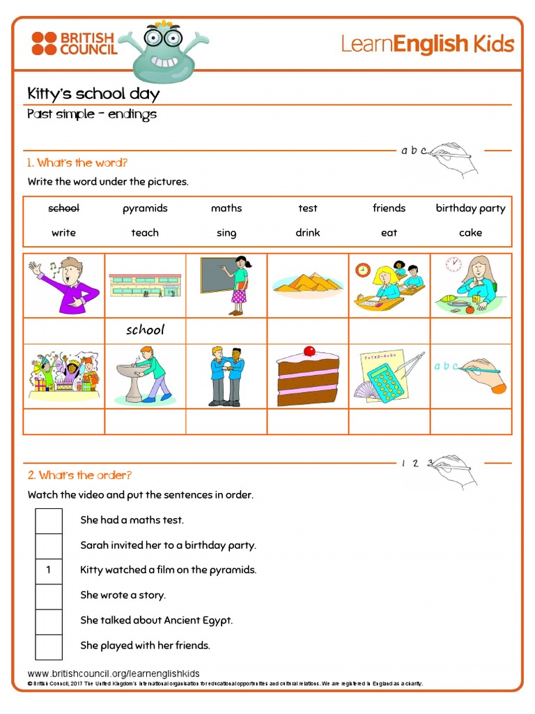 Kitty S School Day Past Tense Activity Syntactic Relationships Languages